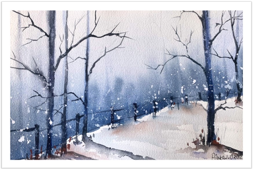 Tabloul Iarna este o optiune excelenta pentru a aduce un plus de eleganta si stil oricarui spatiu. Tablou pictat manual, in acuarela. Aceasta pictura surprinde frumusetea naturala a unei scene de iarna.