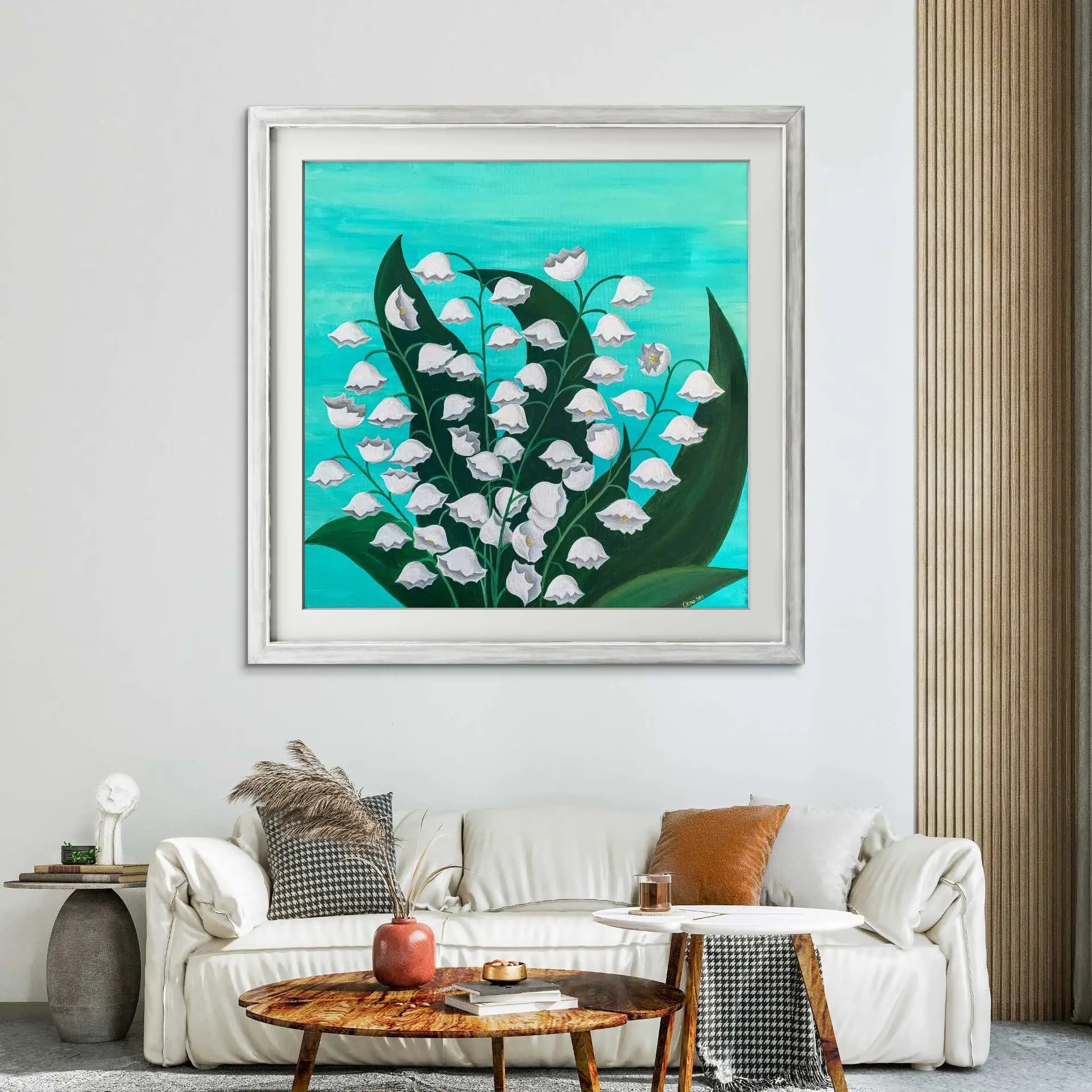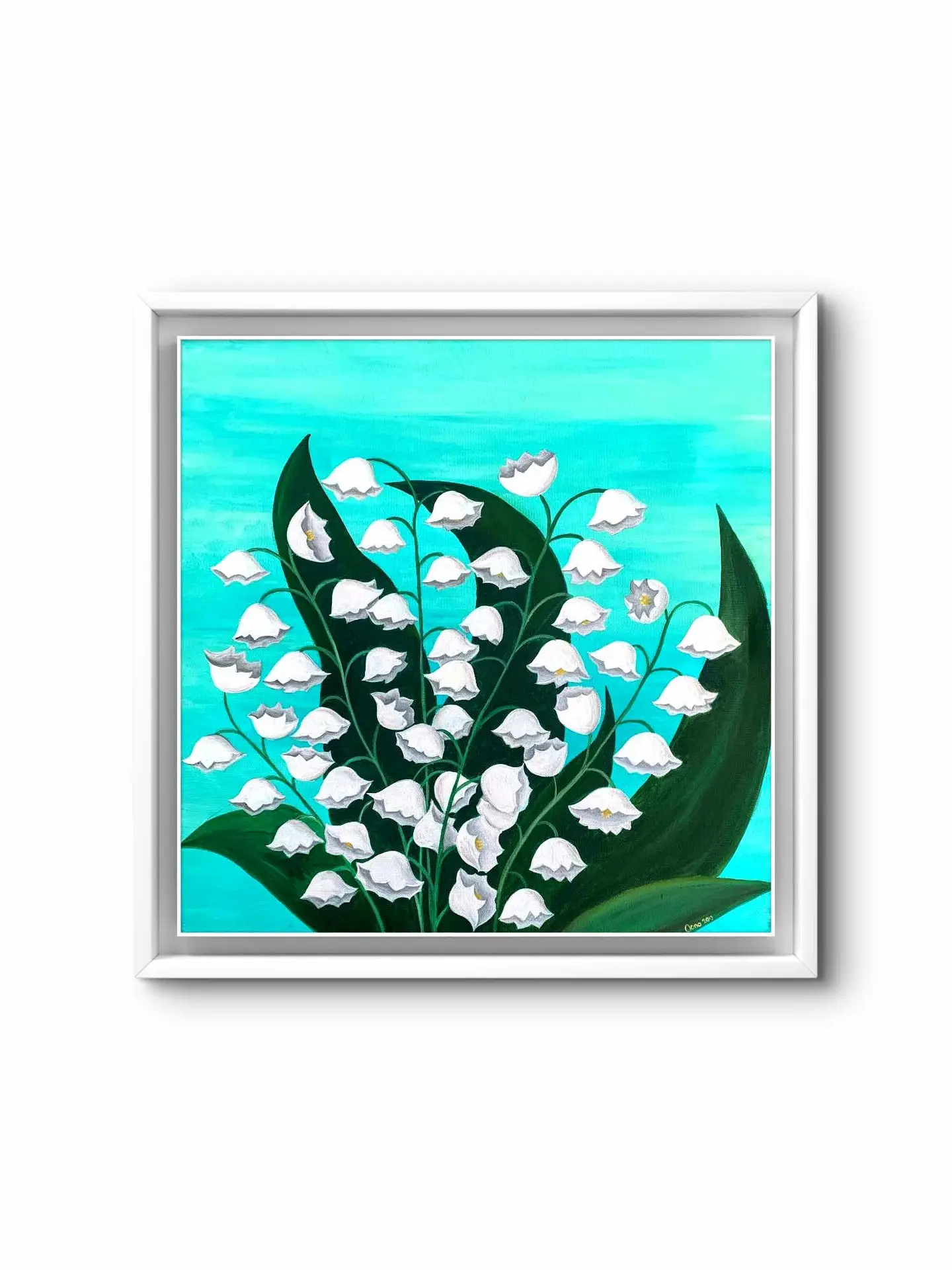Tablou Canvas Clopotei de Primavara este o lucrare de arta unicat, realizata manual de Oana Pinzariu pe canvas de 50×50 cm. Lucrarea are ca sursa de inspiratie delicatetea lacramioarelor. Pictura surprinde detalii fine ale acestor flori gratioase, pe un fundal turcoaz ce evidentiaza frumusetea naturii. Culorile acrilice alese cu grija creeaza un efect vizual de prospetime si eleganta, fiind potrivite atat pentru decoruri moderne, cat si clasice.