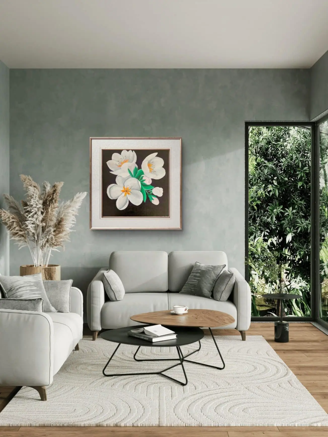 Prin tehnica acrilicului, tabloul imbina nuante vibrante si tonuri subtile, creand un efect tridimensional si profund. Acrilicele sunt cunoscute pentru durabilitatea si intensitatea lor cromatica, ceea ce face ca aceasta opera de arta sa reziste in timp si sa pastreze stralucirea culorilor. Fiecare pensula aplicata cu atentie contribuie la redarea texturii naturale a petalelor si a frunzelor, aducand o vibratie unica tabloului.