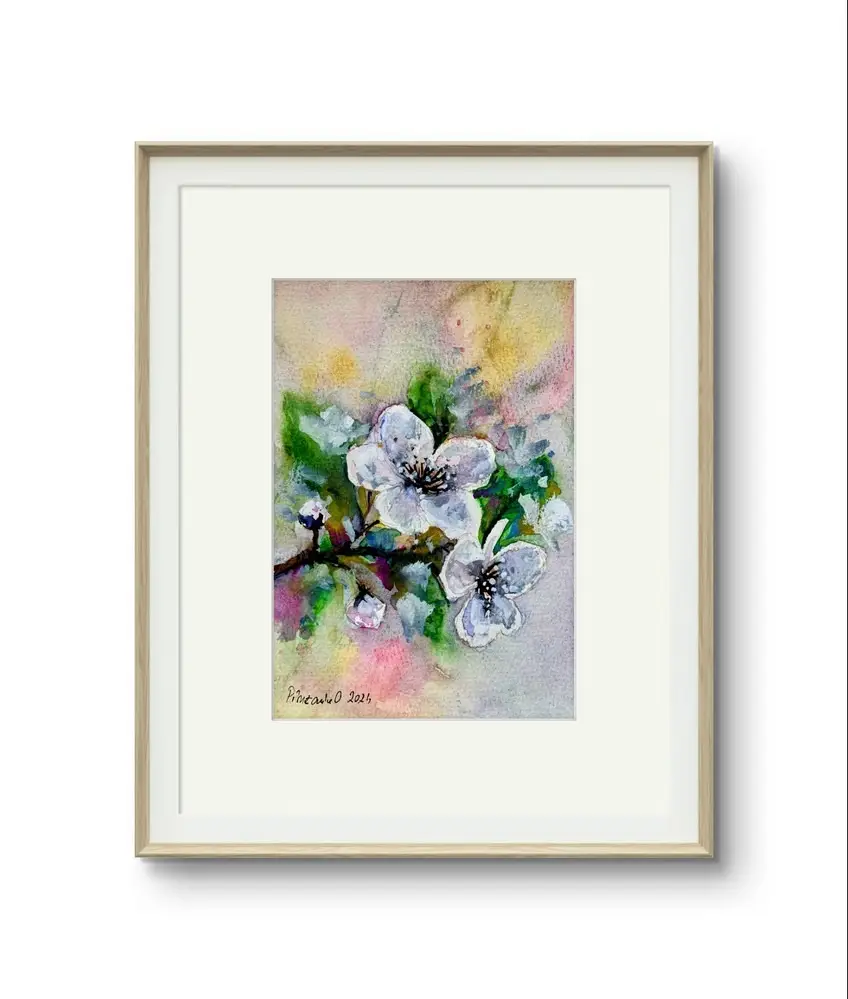 Tablou Flori Albe in Acuarela, pictat manual 12x17cm