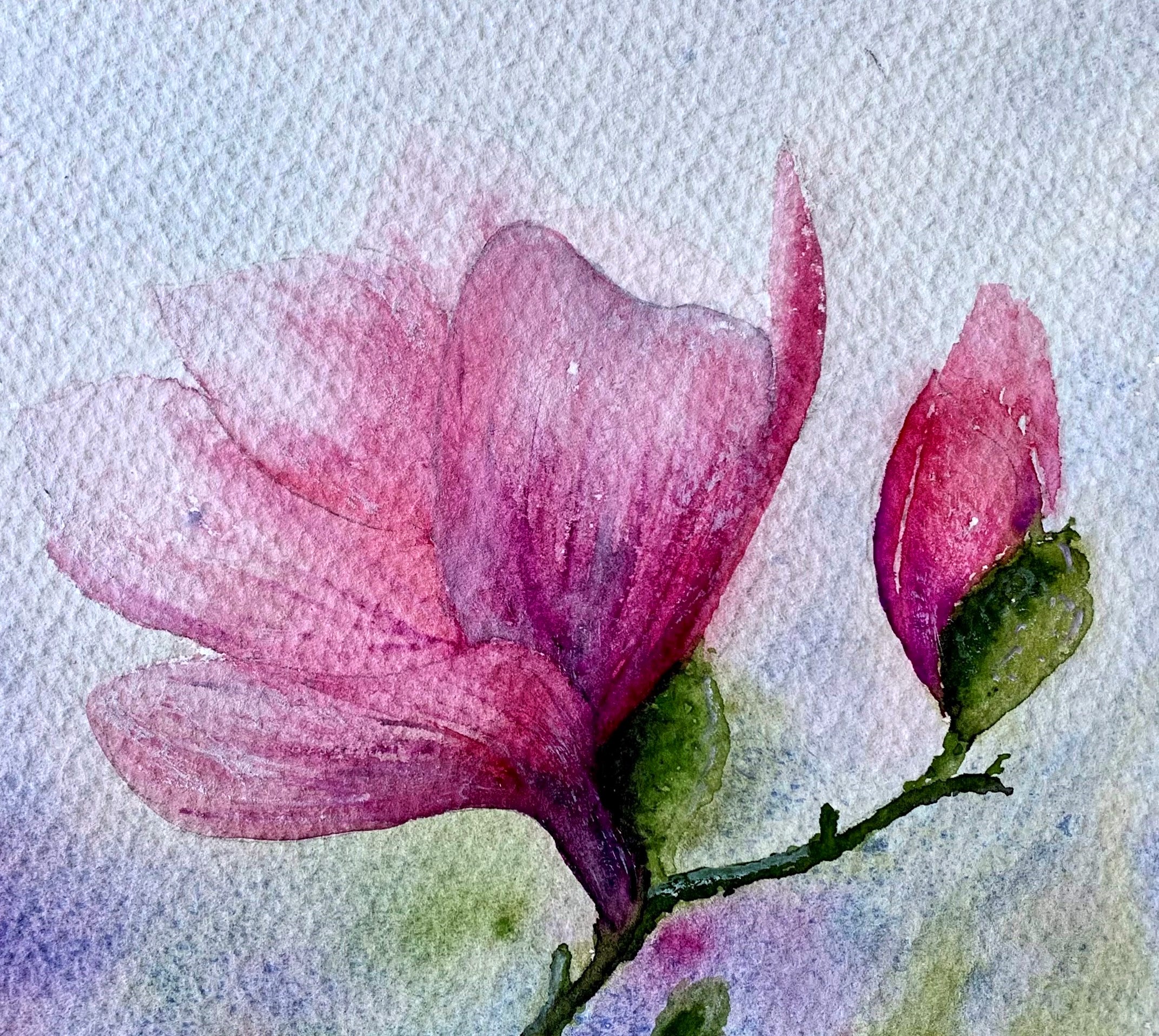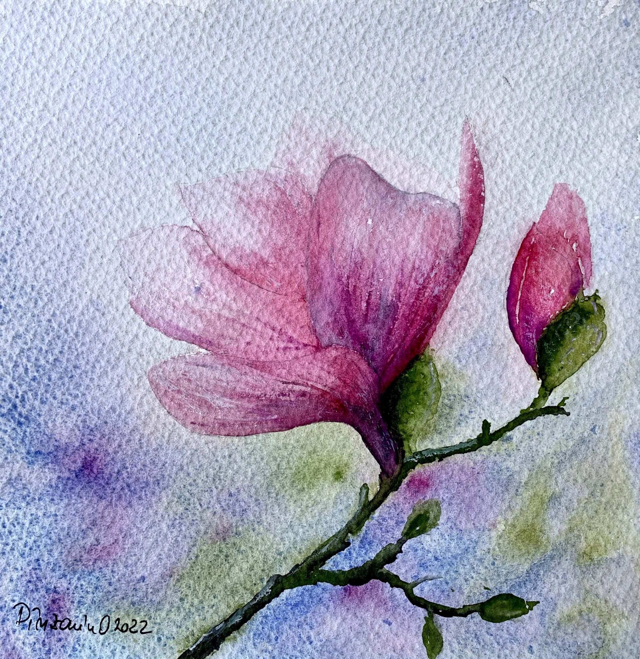 Tablou Magnolii, pictat manual in acuarela, 28x38cm