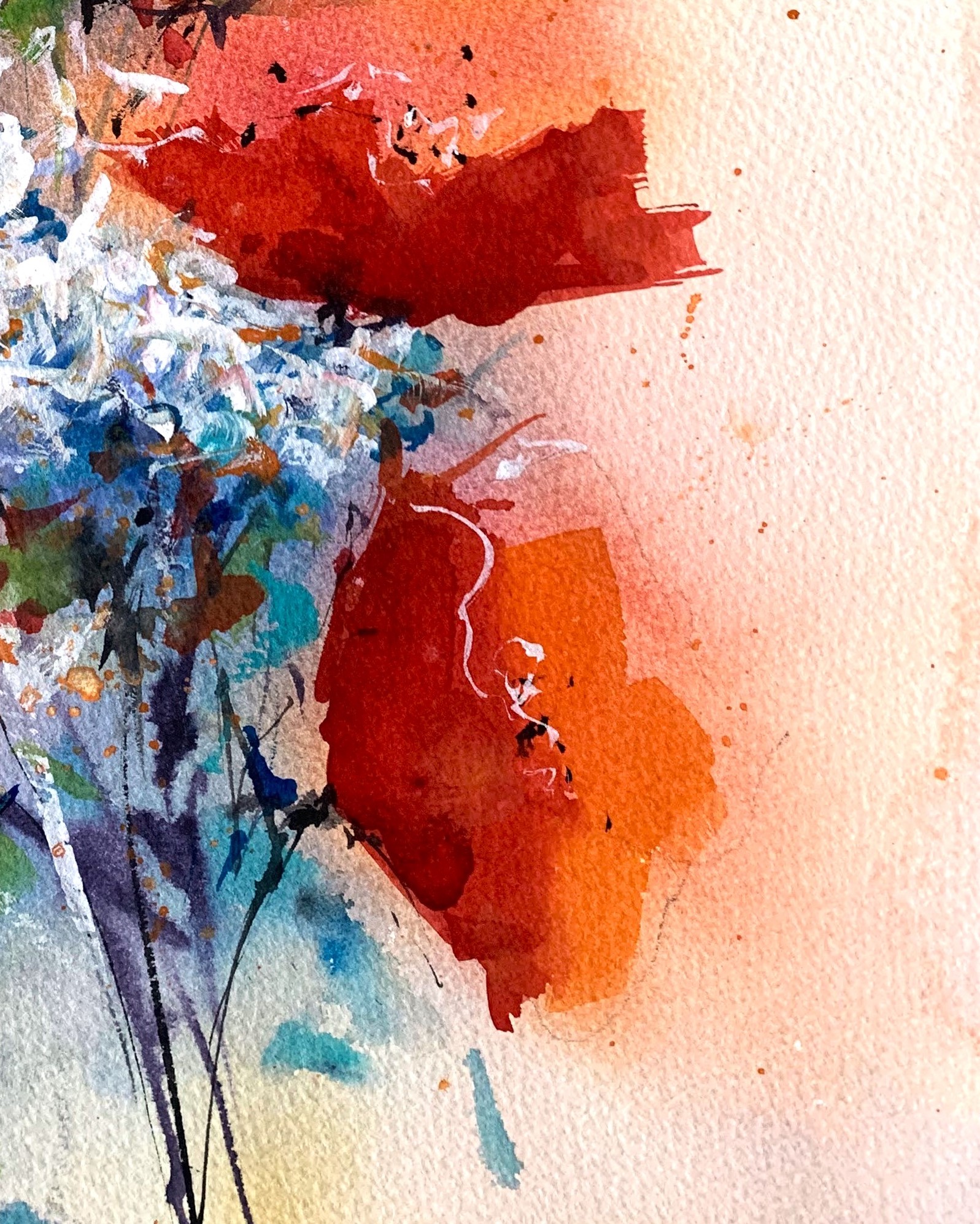 Comanda acum tabloul tau pictat manual in acuarela, Flori de camp, si bucura-te de frumusetea naturii in propria ta casa!