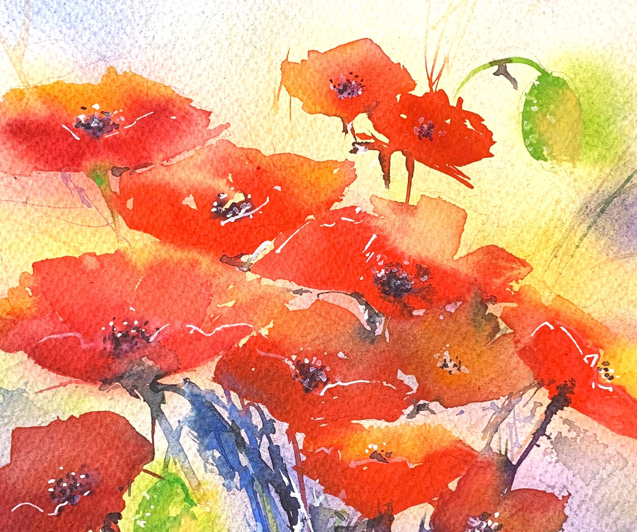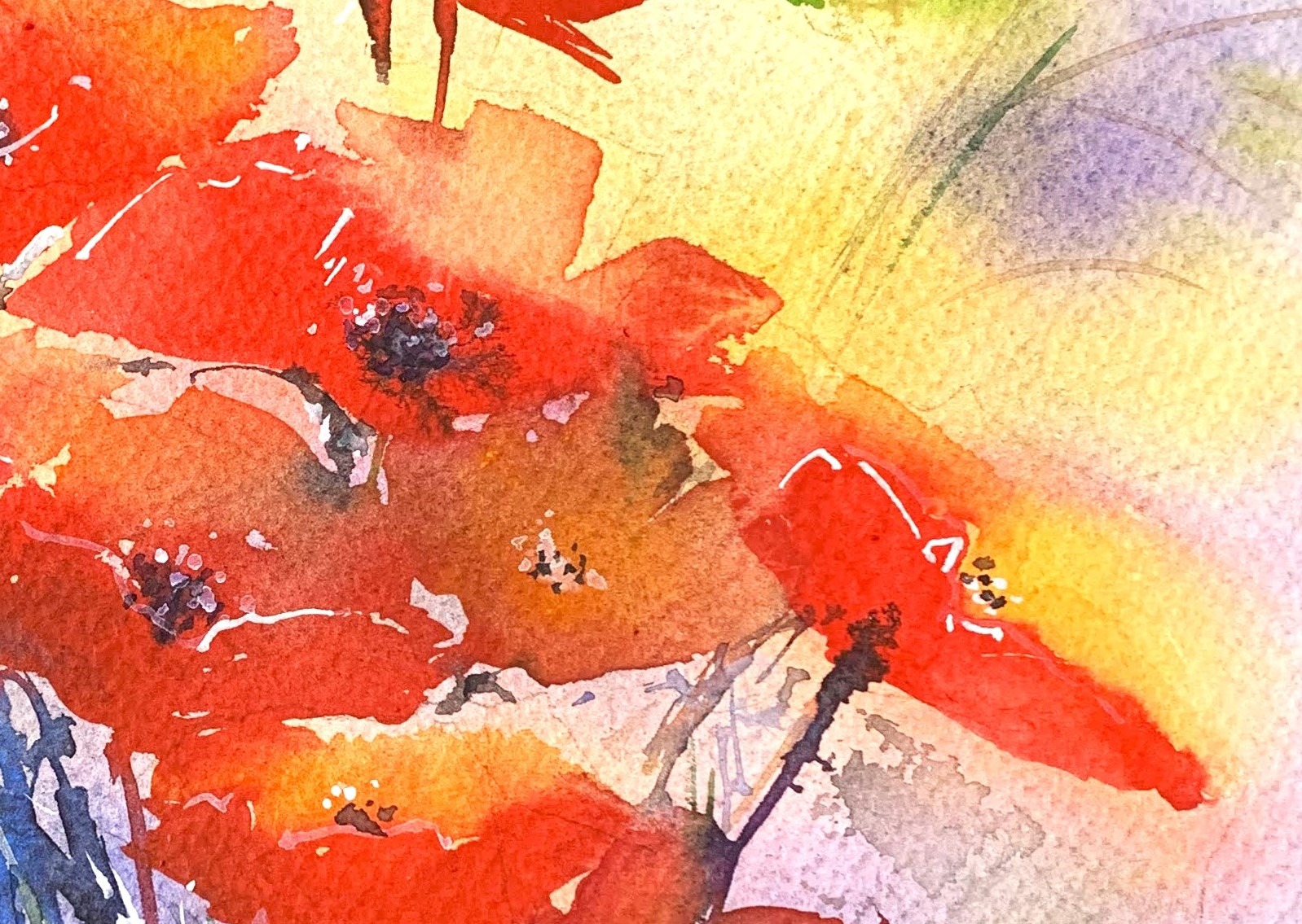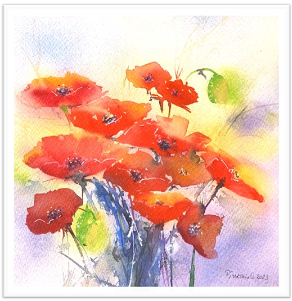 Tablou Flori de camp, pictat manual in acuarela, 30x30cm