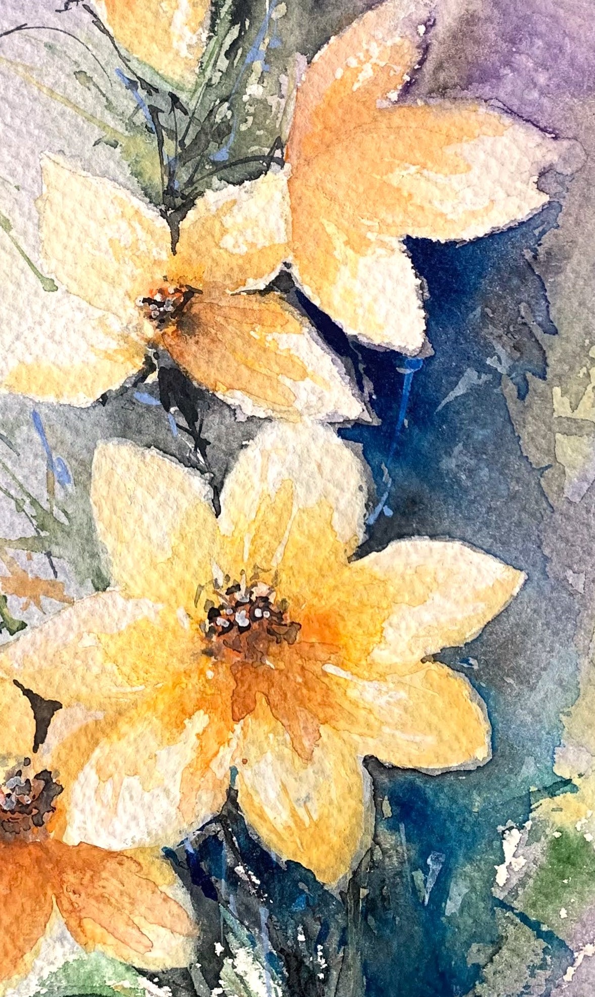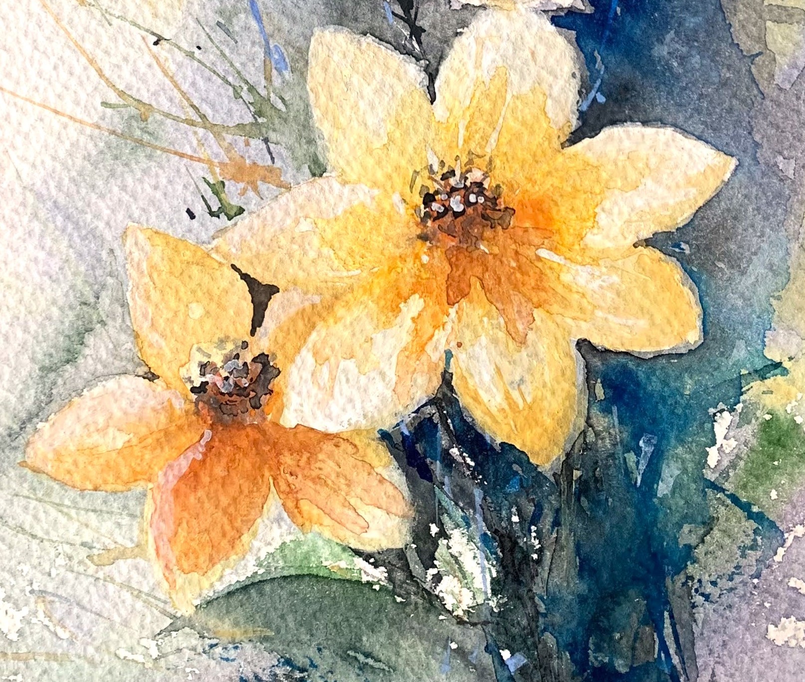 Tabloul Natura moarta cu flori galbene surprinde frumusetea si delicatetea florilor galbene.