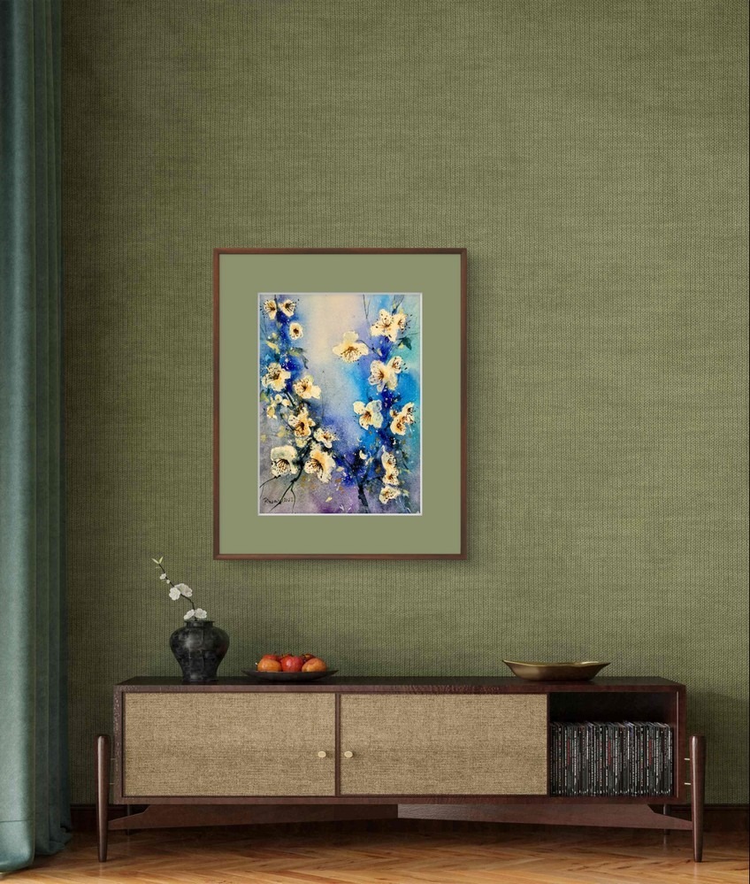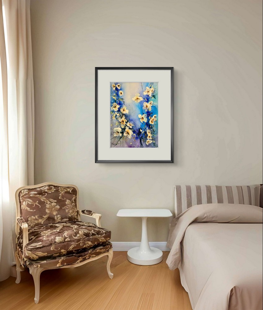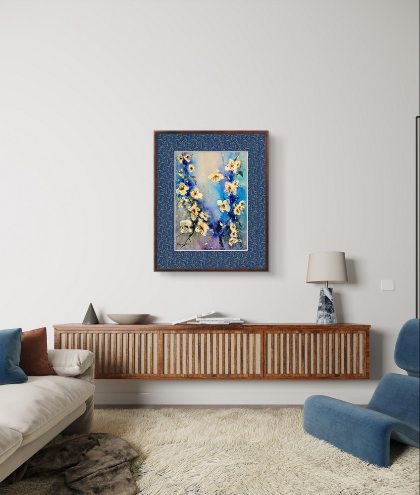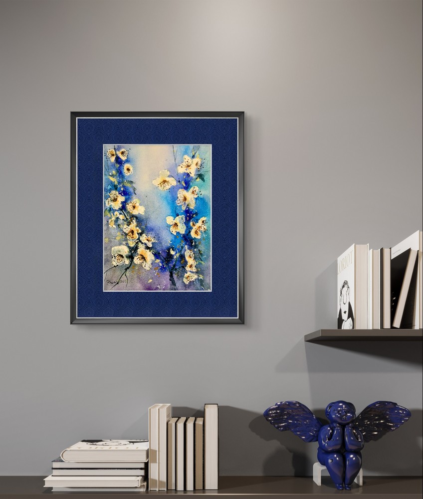 Tablou Flori Albe de Primavara este o alegere ideala pentru cei care doresc sa aduca un strop de prospetime si eleganta in orice incapere. Acest tablou, realizat in acuarela pe hartie 100% bumbac, impresioneaza prin detaliile sale fine si combinatia armonioasa de culori. Floriile albe sunt surprinse intr-un moment de pura delicatete, emanand o senzatie de liniste si puritate. Fundalul albastru adanc completeaza perfect compozitia, punand in evidenta albul stralucitor al florilor.