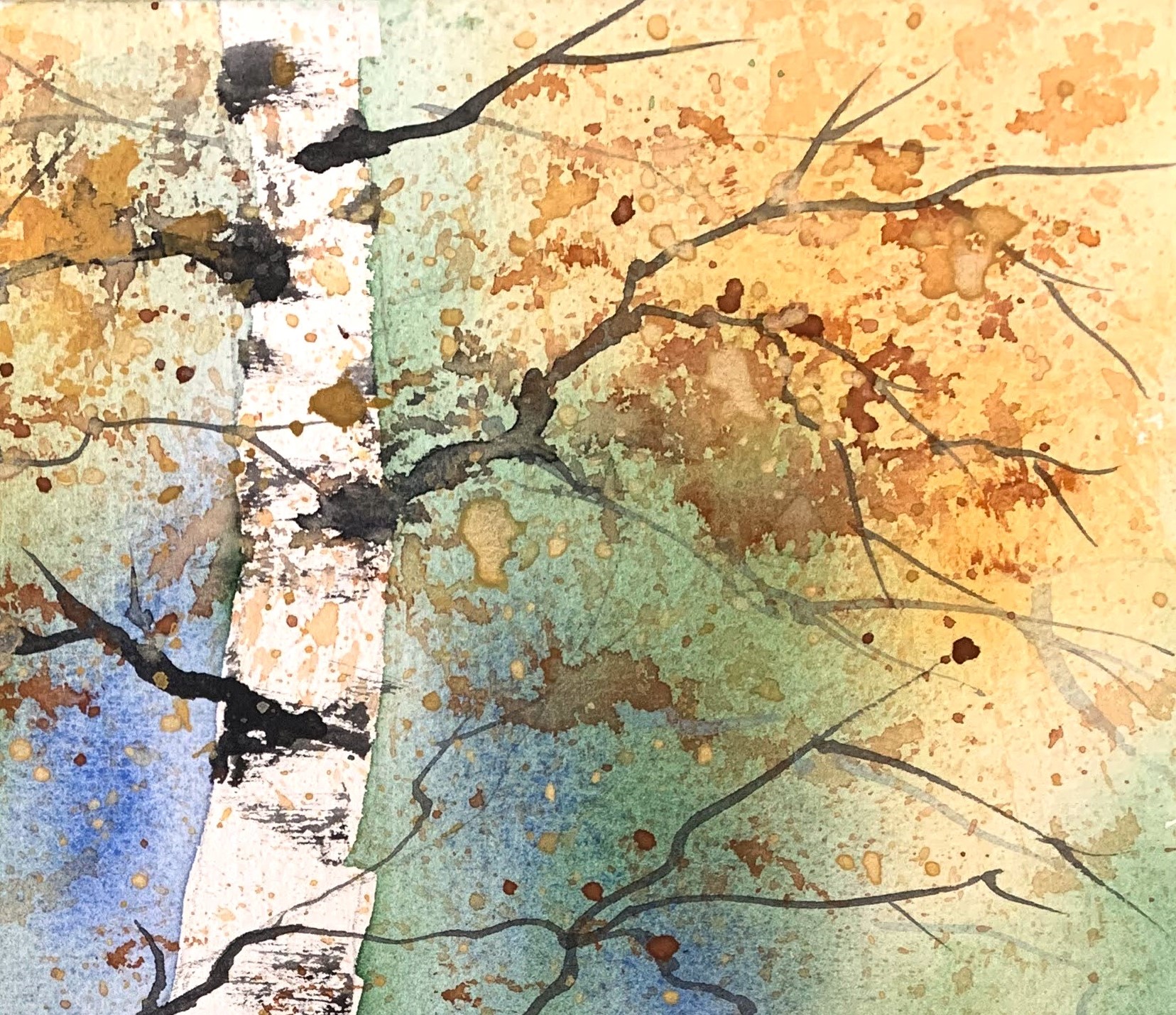 Tablou Toamna cu mesteceni, pictat manual, 28x20cm