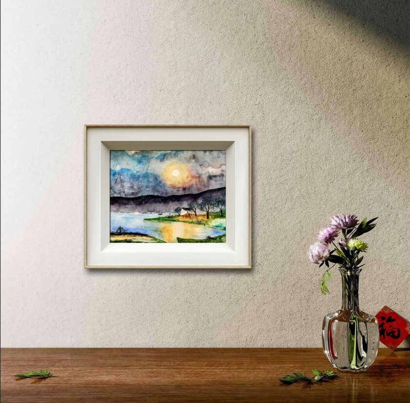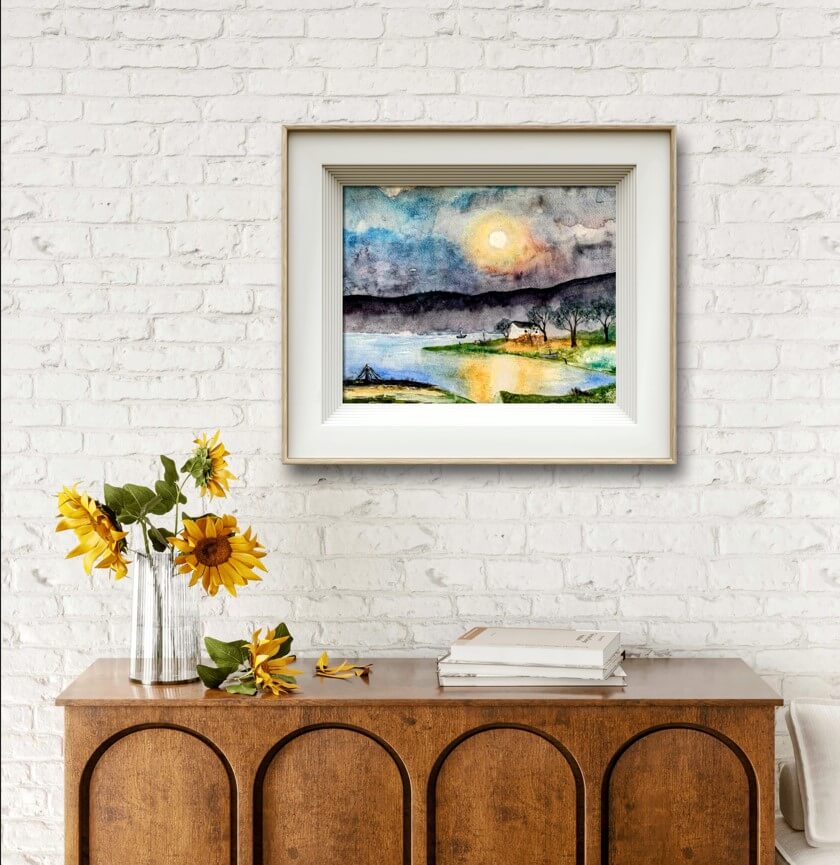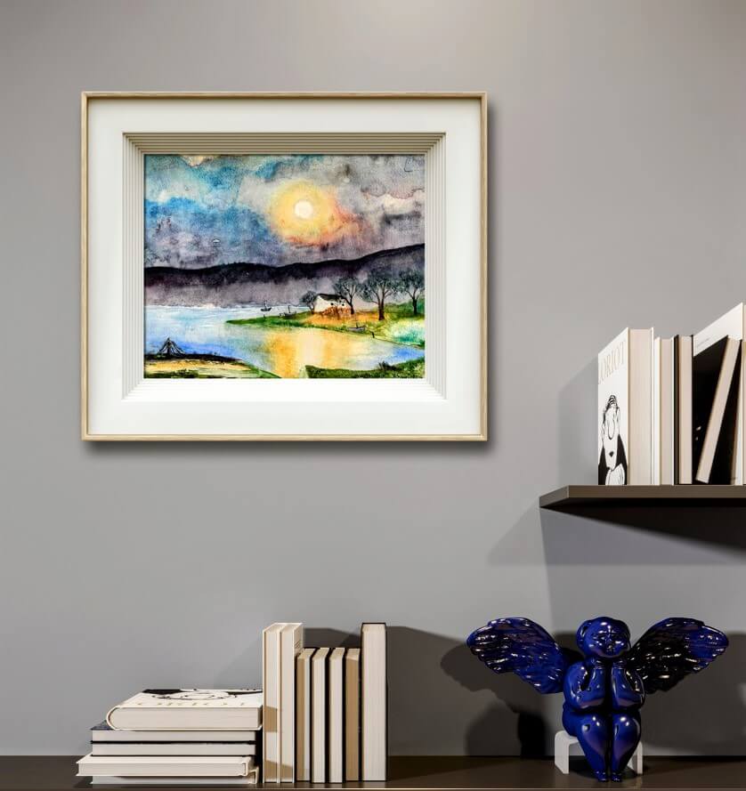 Aceasta lucrare de arta acuarela este ideala pentru a decora un spatiu in care doriti sa aduceti o nota de calm si de natura. Poate fi plasata intr-un living, intr-un dormitor sau intr-un spatiu de lucru pentru a aduce o senzatie de echilibru si relaxare. Cu „Liniste” pe perete, veti crea un mediu propice pentru meditatie, gandire profunda si relaxare.