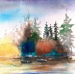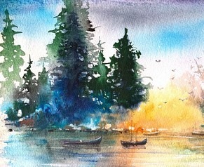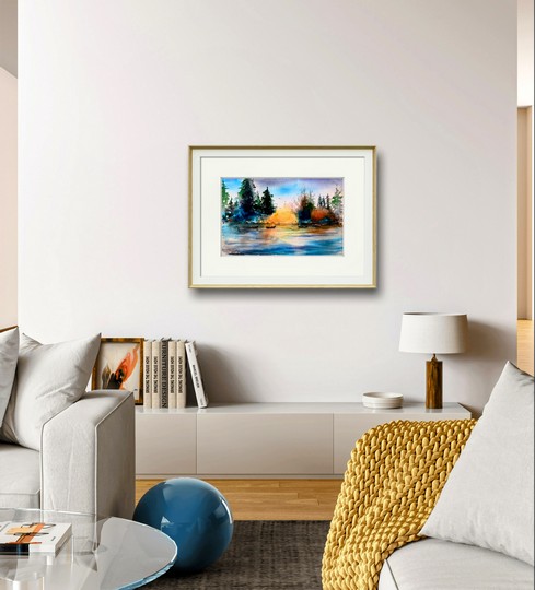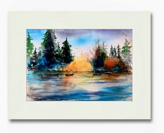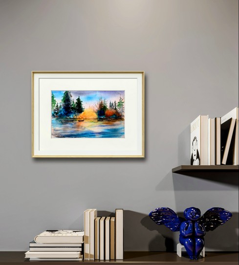 Tablou Amurg pe apa, pictat manual in acuarela, 24x32cm