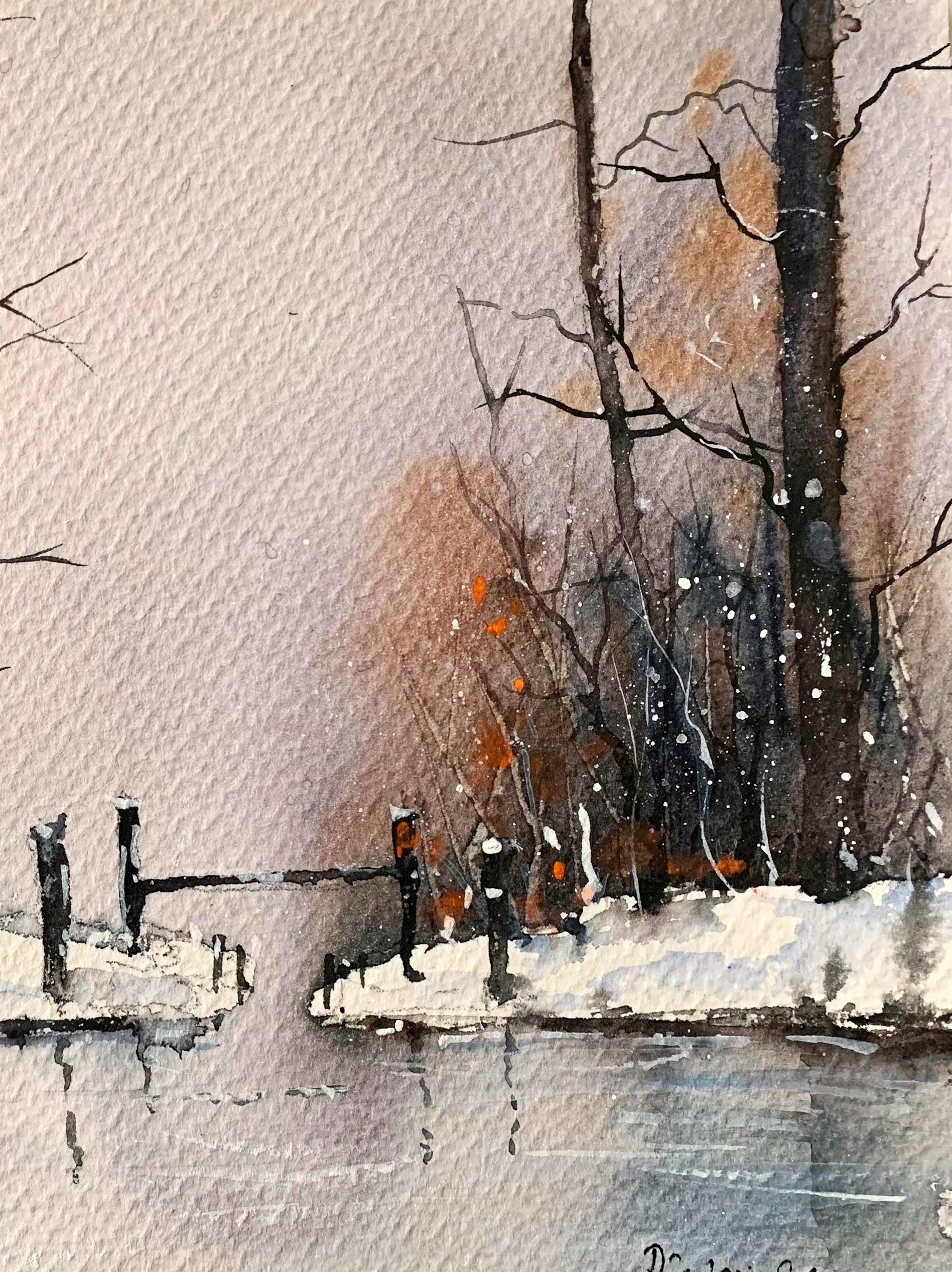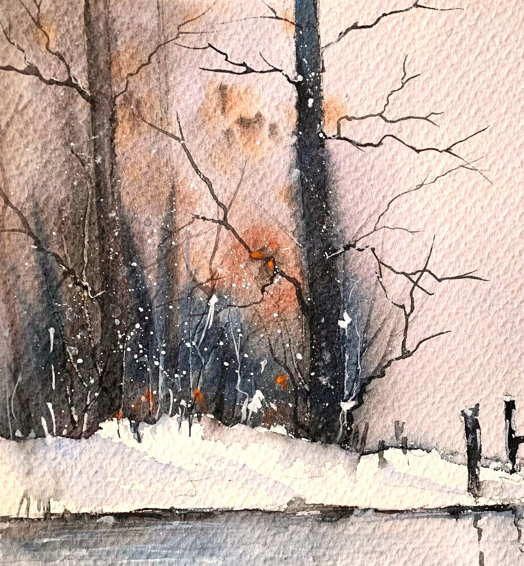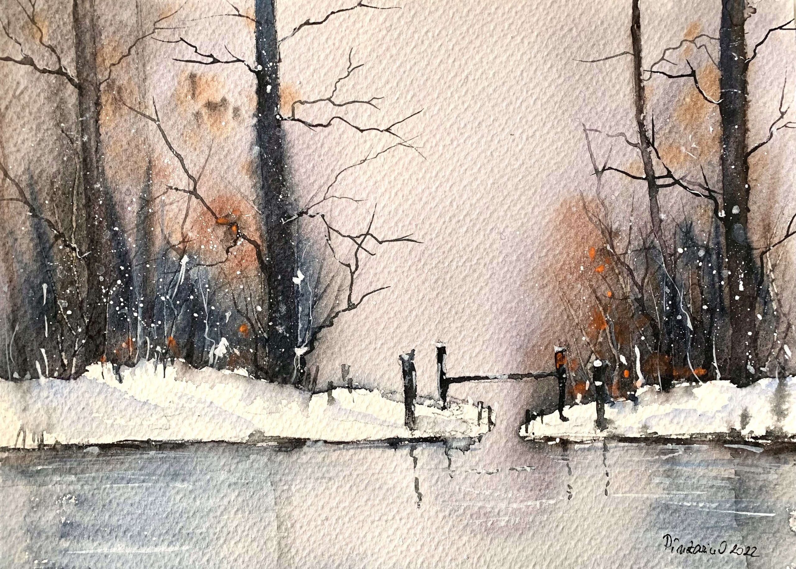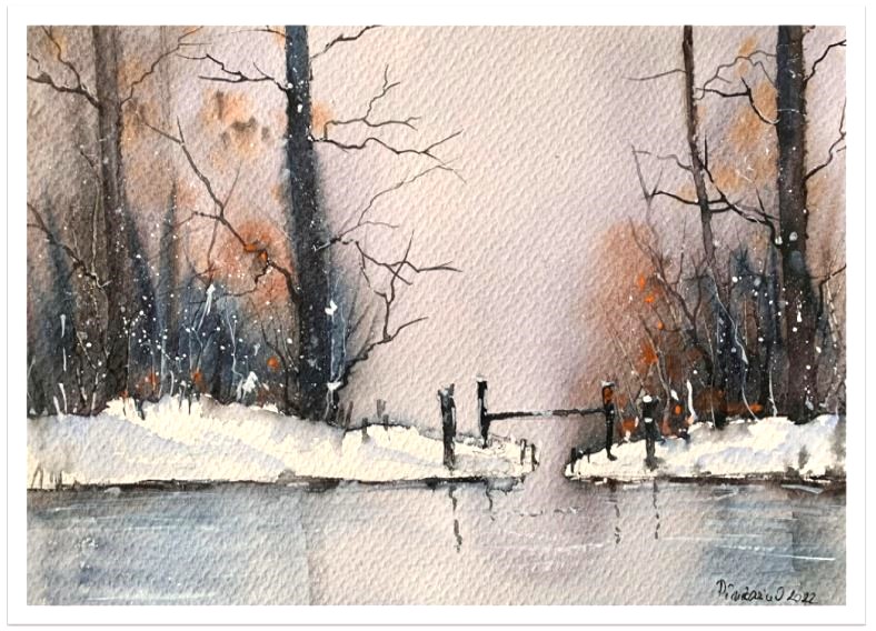 Tabloul pictat manual Iarna luminoasa este o optiune excelenta pentru a aduce un plus de eleganta si stil oricarui spatiu. Realizata cu maiestrie in acuarela, aceasta pictura surprinde frumusetea naturala a unei scene de iarna.