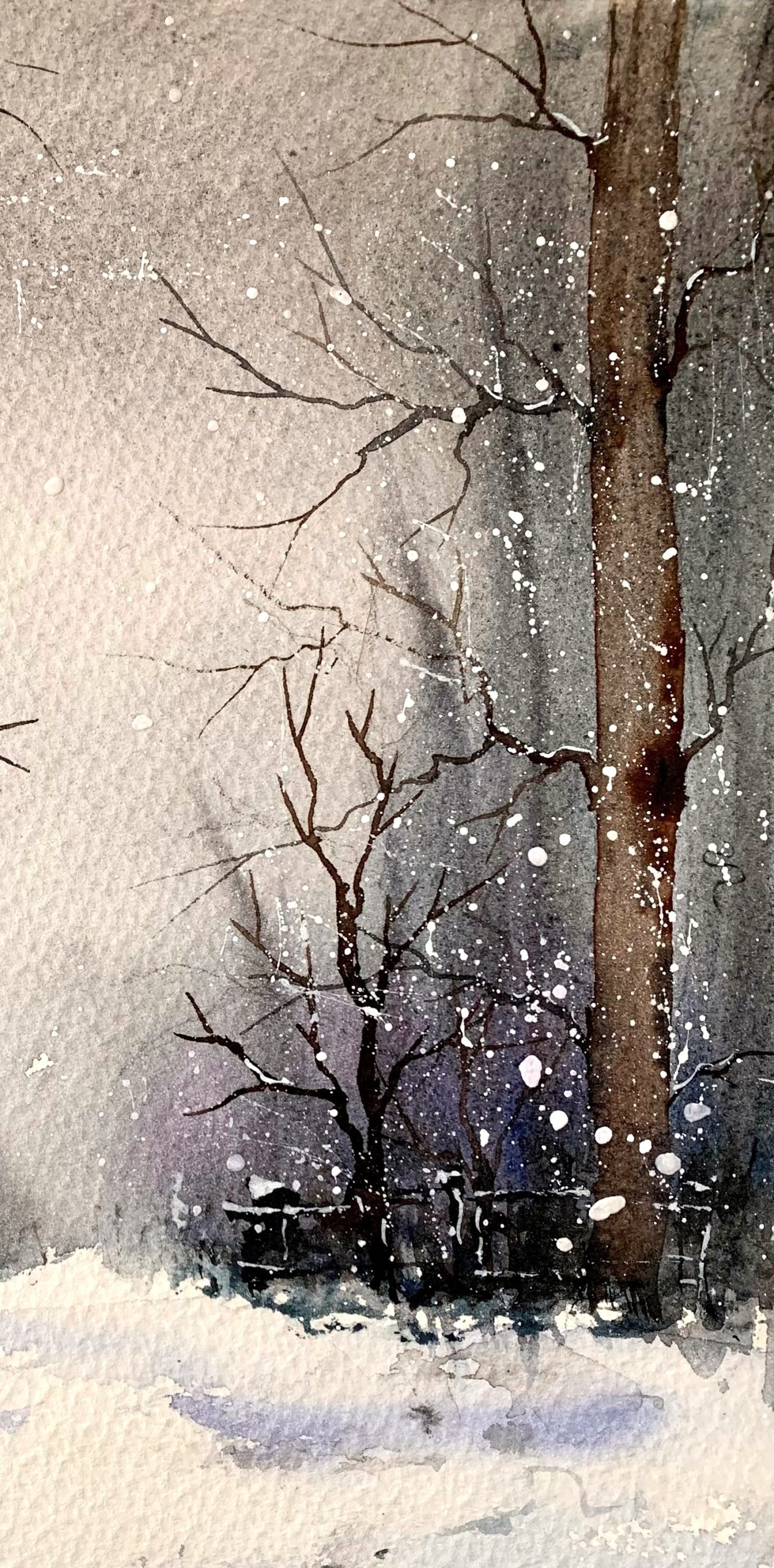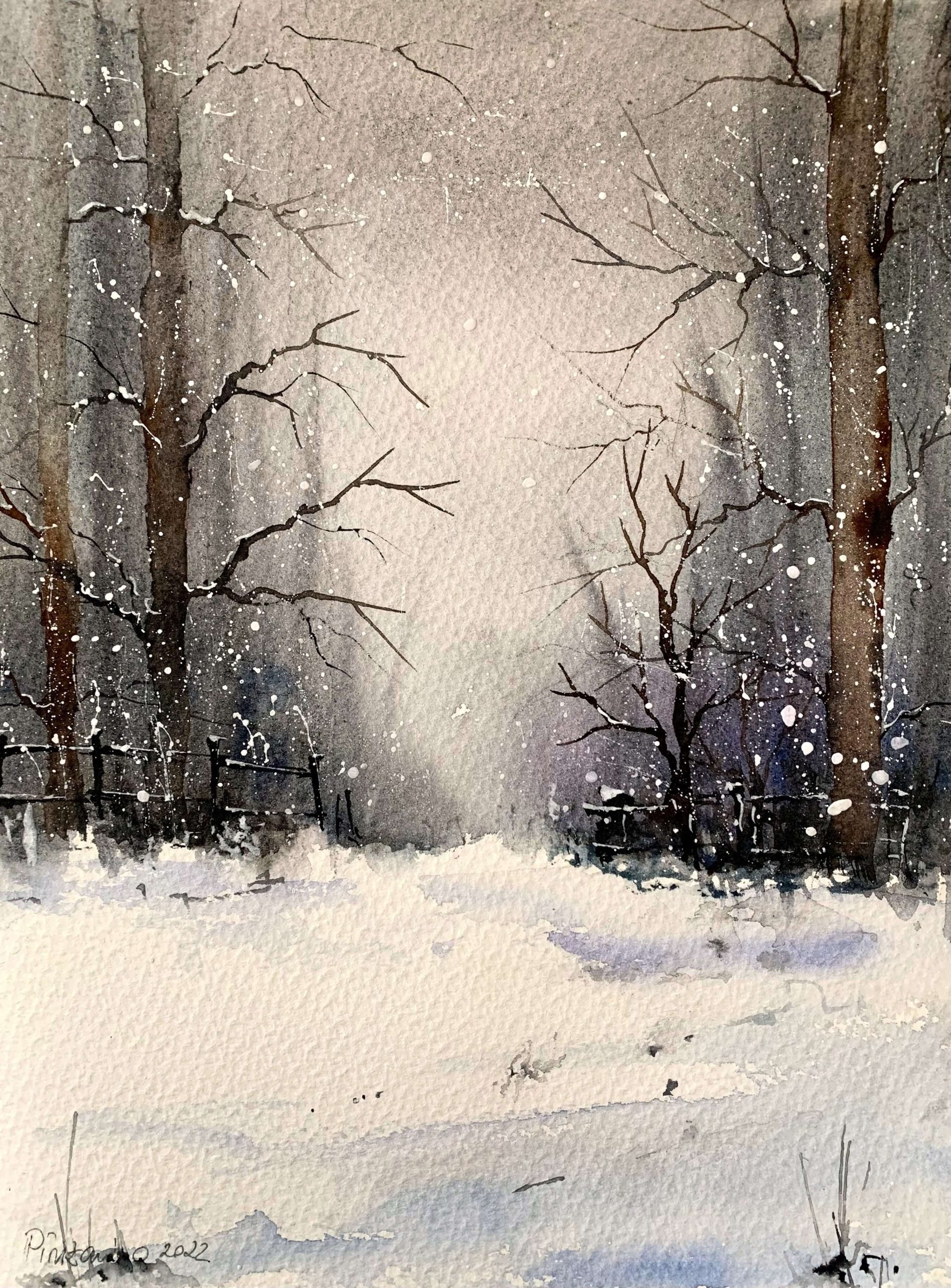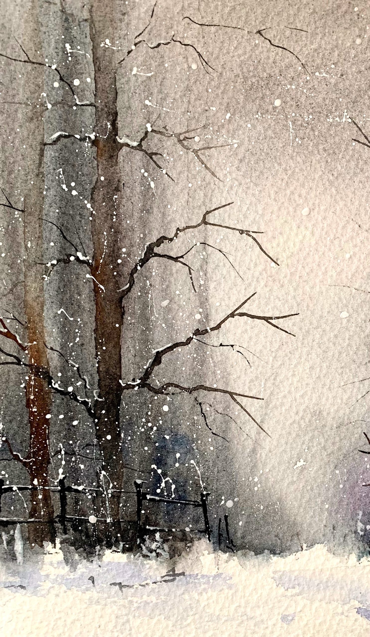 Tabloul pictat manual Prima zapada este o optiune excelenta pentru a aduce un plus de eleganta si stil oricarui spatiu. Realizata cu maiestrie in acuarela, aceasta pictura surprinde frumusetea naturala a unei scene de iarna.